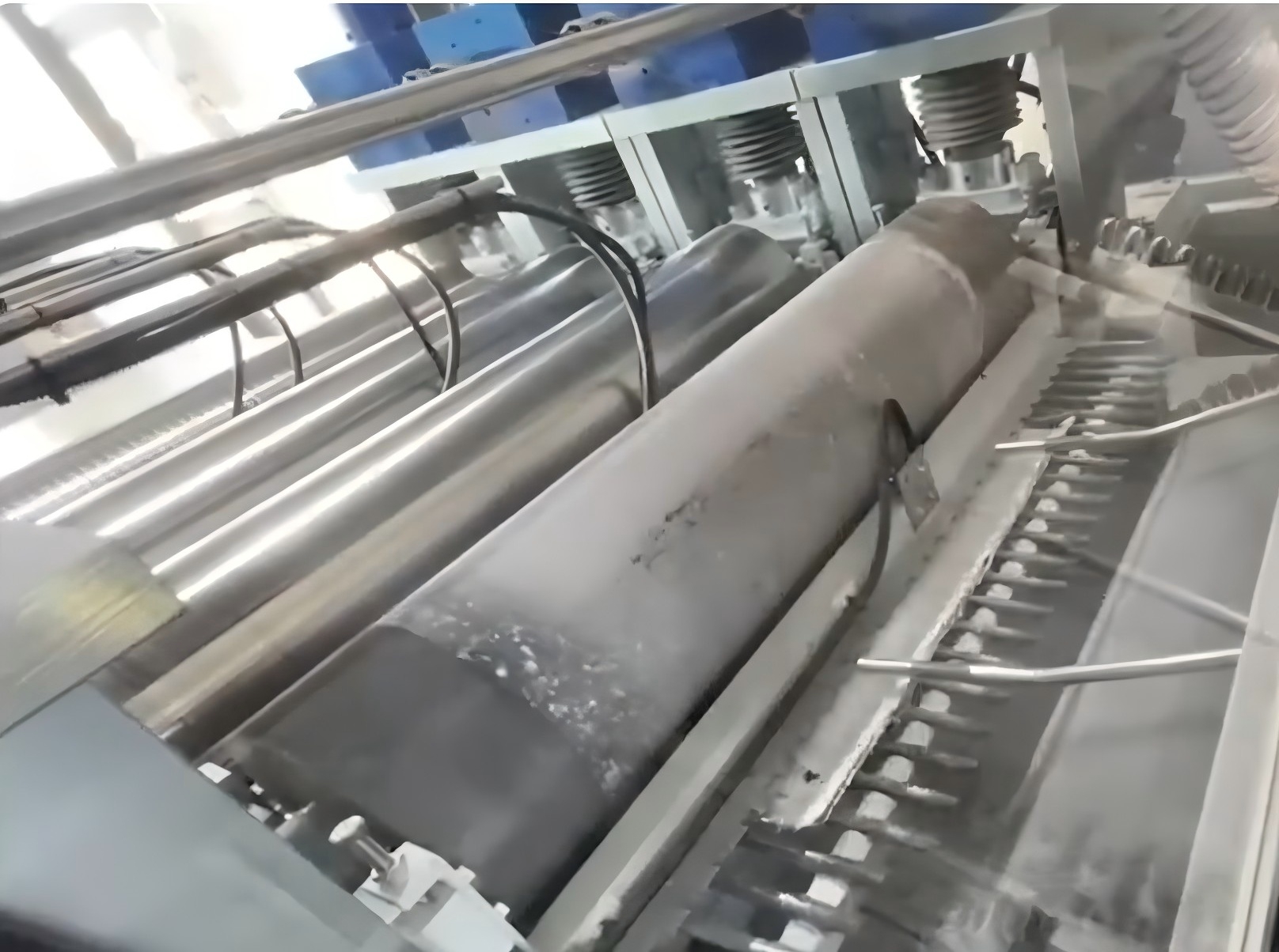 After the softening process, the PV panels are transported to the head section of the machine. At the headstock location, there are two rollers, and the PV glass panels are fed into the center of the rollers and squeezed to move forward.