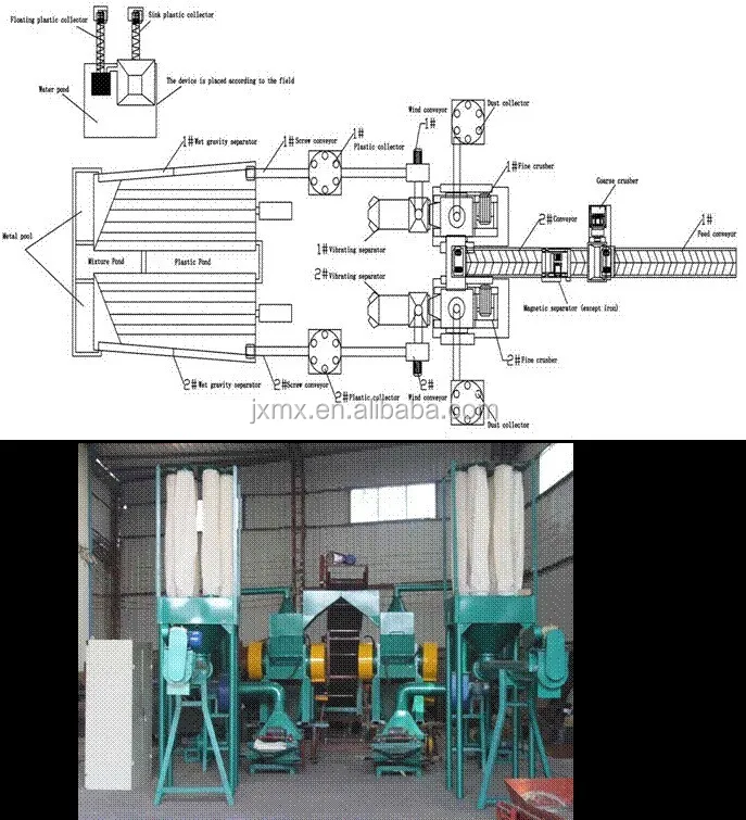 废旧铜线/电缆回收生产线广泛用于从废弃电脑线缆中回收铜,电话线、通信线、电线电缆等。铜回收率可超过99%。运行过程中无任何粉尘和水污染。整个回收线由PLC柜控制并自动运行,节省人力,操作简便。