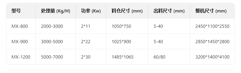 该机设计新颖、噪音低、扭矩大、用途广,在破碎过程中,具有拉切、扯断、挤压、自动退料,能使各种塑料、废电线、电缆、印刷电路板、废旧冰箱、洗衣机、空调、电视、电脑等家电及打印机、复印机、传真机等办公用品。废旧橡胶、工程树脂、城市废物、木材、管材、粗大块料破碎之用,每小时处理量1-10吨。